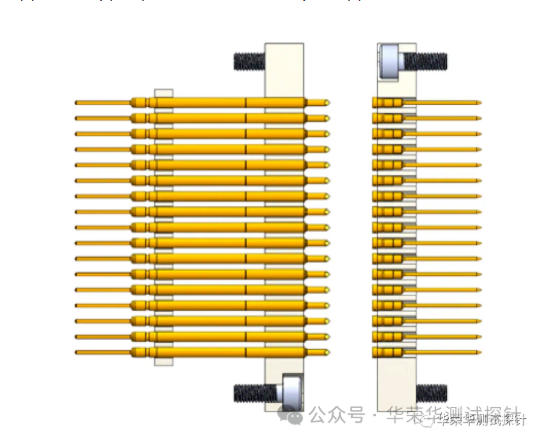 界面針主要用于測試機臺與測試夾具的接觸點和面,附圖右邊即為界面,用于將信號進行無線轉(zhuǎn)接。
