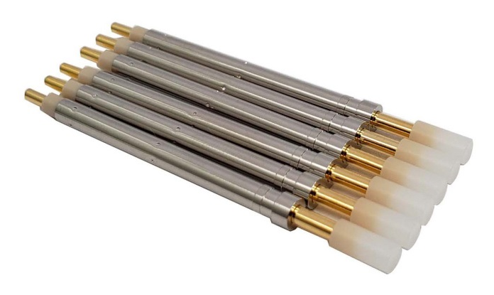 具備固定接觸方向的結構設計(如僅允許垂直/水平單向接觸),可精準對準被測點,避免偏移導致的接觸失效,針尖多為尖形或楔形,適配特定布局的被測對象(如密集排列的芯片引腳、側置端子),常見于微型電子器件測試,如傳感器引腳的側向導通檢測、高頻信號傳輸?shù)亩ㄏ蜻B接,部分型號支持高頻(>1GHz)信號無失真?zhèn)鬏敗?/p>