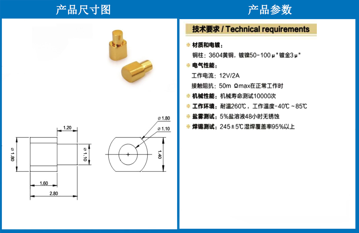 產品型號:1.8*2.8銅柱