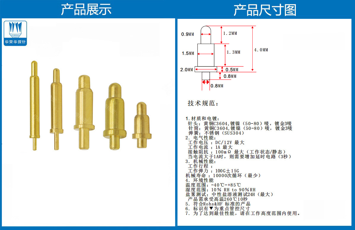 產品介紹:這個針通常用于智能手表,藍牙耳機上的有充電的功能,但是探針總體來說還是測試的
