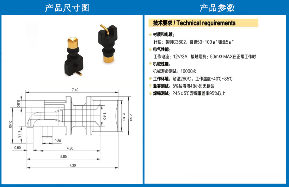 產品介紹:這個針通常用于智能手表,藍牙耳機上的有充電的功能,但是探針總體來說還是測試的