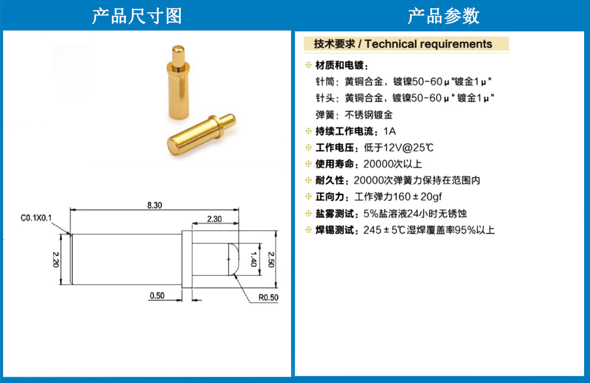產品介紹:這個針通常用于智能手表,藍牙耳機上的有充電的功能,但是探針總體來說還是測試的