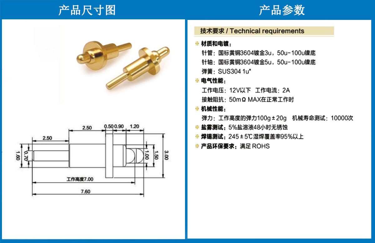 產品介紹:這個針通常用于智能手表,藍牙耳機上的有充電的功能,但是探針總體來說還是測試的