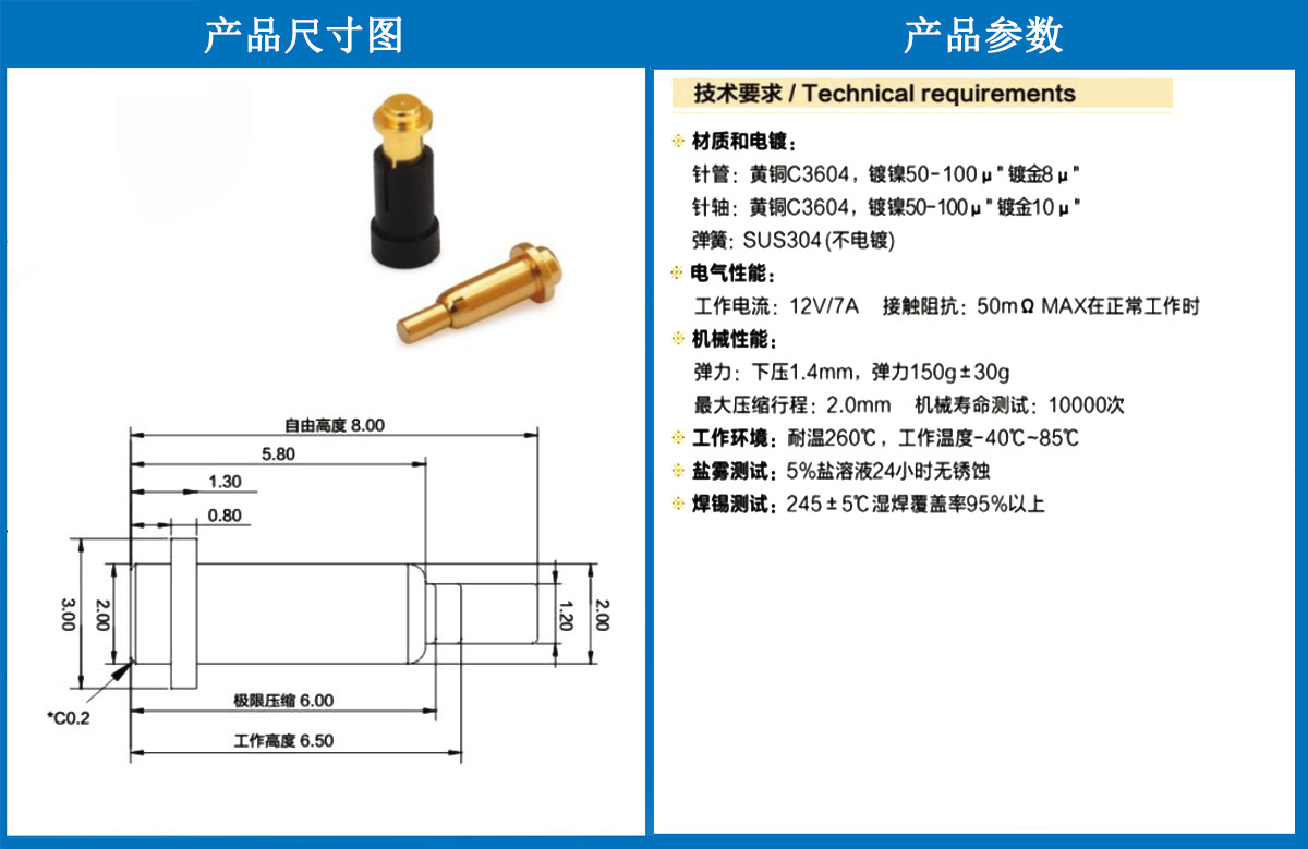 產(chǎn)品介紹:這個(gè)針通常用于智能手表,藍(lán)牙耳機(jī)上的有充電的功能,但是探針總體來說還是測(cè)試的