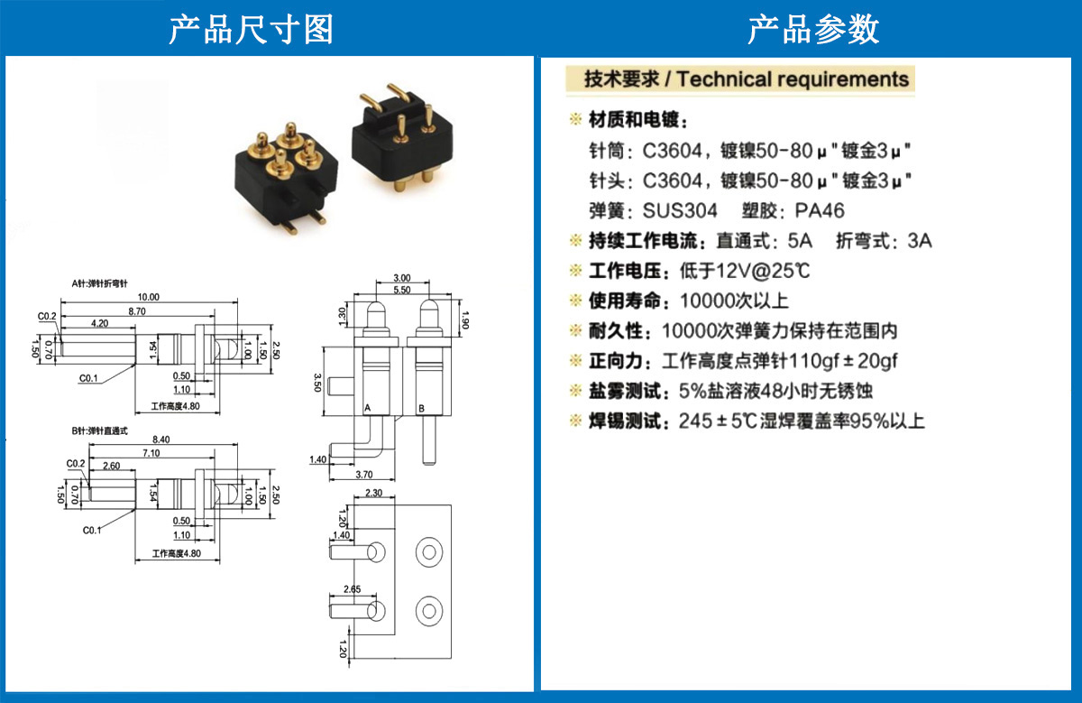 產(chǎn)品介紹:這個(gè)針通常用于智能手表,藍(lán)牙耳機(jī)上的有充電的功能,但是探針總體來(lái)說(shuō)還是測(cè)試的