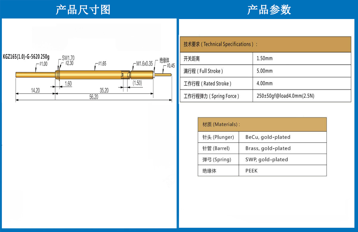 KGZ165(1.0)-G-5620 250g 當(dāng)前位置:首頁 » 開關(guān)針探針