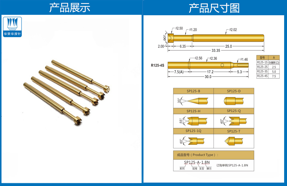 產品簡介:SP125探針、2.02mm測試針、總長33.35mm、彈簧針、測試針、探針