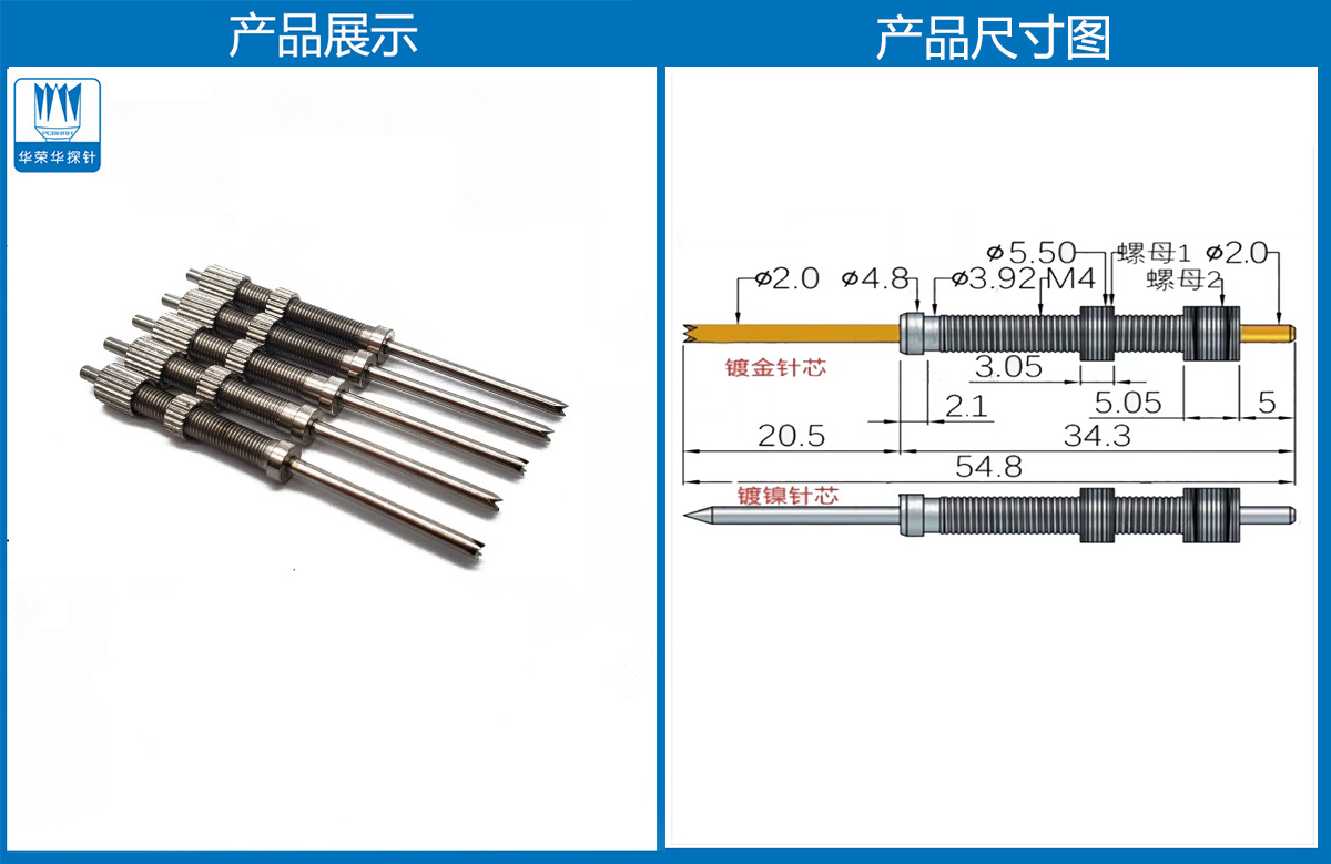 產品簡介:定位針、爪頭探針、總長度為55.0mm、ICT測試針、功能夾具定位針、測試針、五金配件